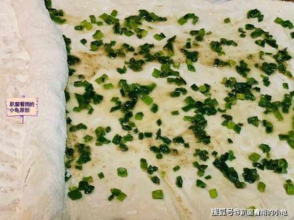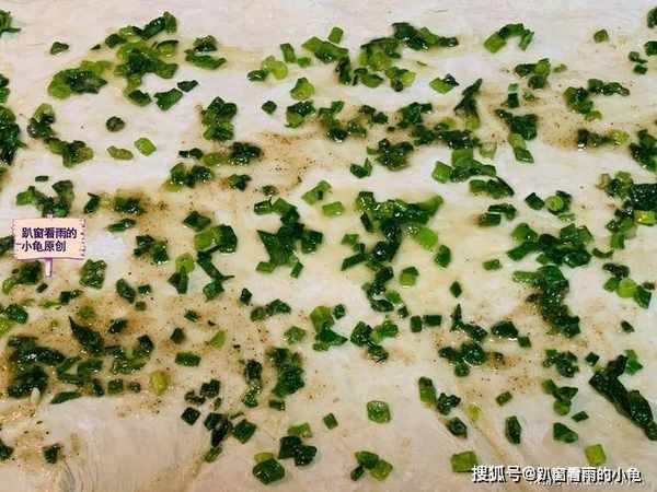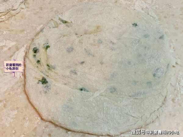 2:想要葱油饼层多,油酥不可少,另外,将封口后的小剂子拧几下再擀成薄饼,层会更多。