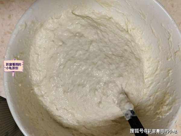 1:搅面糊时,要尽量软一些,因面粉的质地不同需要的水量稍有差别,把面搅成光滑无干粉的粘稠面团即可。