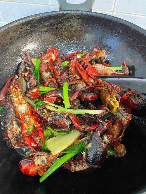 烹饪小龙虾。将清洗好的小龙虾放入锅中,加入适量的盐、姜、葱、料酒等调味料,煮至熟透。