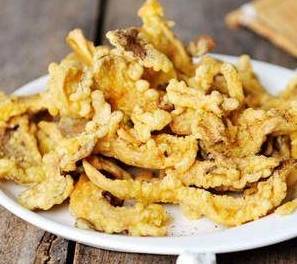 1准备蘑菇,将蘑菇撕成手指宽度的条(别太细了,一炸就糊了),洗净。