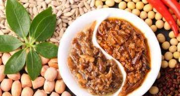 7将蘑菇粒倒入锅中,翻炒均匀.调入一大勺豆瓣酱,拌匀.倒入一大碗清水,大火煮开转小火焖.