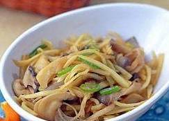 1准备茭白,蘑菇,蚝油,鸡精等,茭白切丝,蘑菇手撕