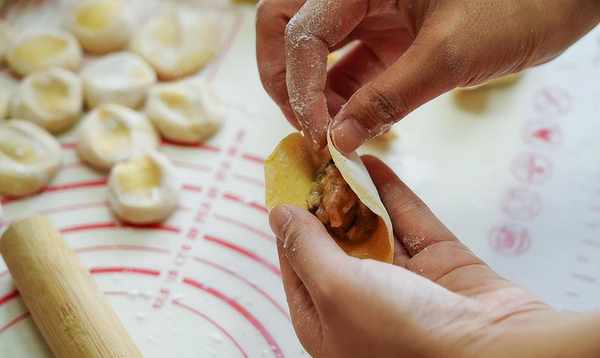 3、取适量馅料包入哑音壳内,用手擀成原木状,将包好的一团放在篦帘上。锅里加水,食用盐少放,(这样饺子不容易破壳)水开后,把包好的苦菜饺子放进锅里,用勺背往里推,防止。放的时候卡在锅里了。水第一次烧开时,加入冷水,待第三次水烧开后饺子浮起,即可用漏勺捞出装盘。