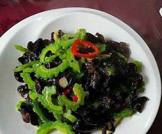 这是苦瓜炒木耳,第一次吃这样的搭配,算是比较新奇吧,苦中有木耳的脆,很爽口去油腻。