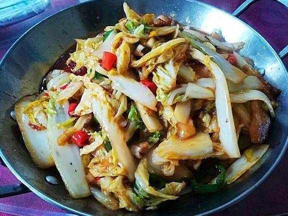 白菜炒香菇,信阳是生产香菇的地区,香菇也是他们的家常菜,虽然网络里信阳名菜没有香菇菜好像,信阳农家家常菜还是有很多香菇菜的,这就是香菇家常菜之一,用的是新鲜香菇炒的,也是锅的一种。