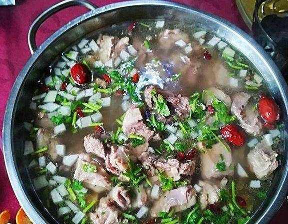 炖羊肉,信阳人也吃羊肉,只是那里是山羊,在新疆就用了绵阳炖的,属于清炖吧,味道还不错,也是用酒精炉煮着吃,这是信阳锅菜的特点。煮的热气腾腾,很香