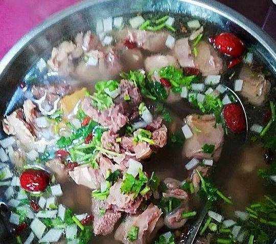 风干鸡,也是信阳名菜的一种,炖,煮为主,里面加了鸡血块,煮的热气腾腾,味道真的太不一般了。