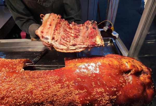 国产猪肉质地富有弹性。用土猪肉烤出来的猪肉,味道鲜美,皮脆肉软,浓郁有嚼劲。
