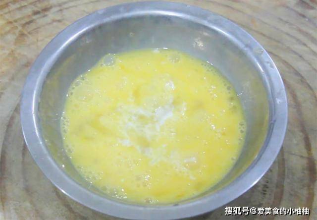 3.碗中打两个鸡蛋,打散后放入少量水淀粉,再次搅拌均匀。