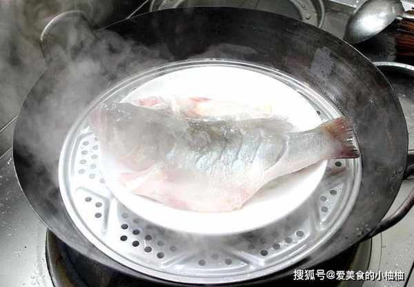 3.锅内烧水,放上篦子,盖上锅盖,大火把水烧开,把鱼放入锅中蒸6分钟。