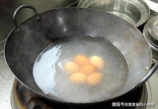 3.锅内烧油,油温五成热时把鸡蛋放入锅中,用勺子不停地推动让鸡蛋均匀受热,防止其粘在锅底,保持小火炸3分钟左右,鸡蛋表面呈金黄色、蛋清起皱时捞出,放入清水中浸泡20分钟,这一步的目的是让鸡蛋表皮胀发、起虎皮斑。
