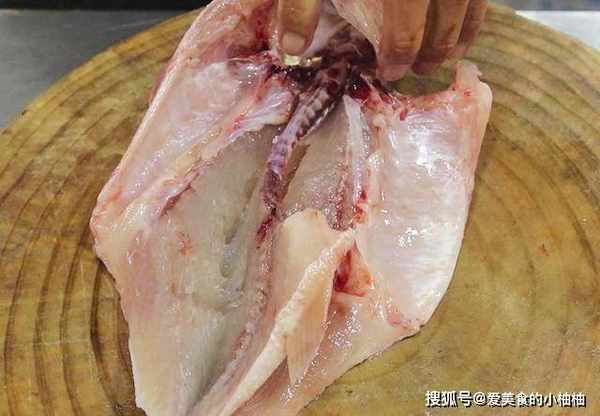 1.准备鲈鱼一条,已经提前宰杀好了,在鱼身两侧切上几刀,切的时候不要切透切至鱼骨即可,再把鱼片切成两半,不要片透以免影响造型,放在清水中,洗净鱼身上的血水备用。
