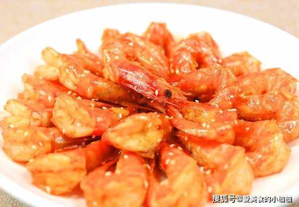 5.5分钟以后汤汁收成粘稠状,均匀裹在虾肉上面时即可出锅摆盘,最后撒上香菜和白芝麻,美味即成。
