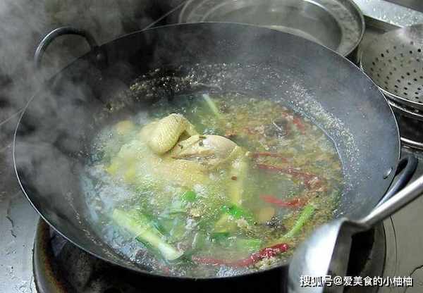 3.锅内烧油,油烧热以后倒入香料,开小火翻炒2分钟左右,炒出香味以后从锅边淋入清水,把嫩鸡放入锅中,水量要没过鸡,加入料酒10克去腥,鸡精2克,食盐3克,胡椒粉1克,大火烧开后打去浮沫,盖上锅盖煮15分钟,把鸡肉煮熟,让其吸收料汁入味。