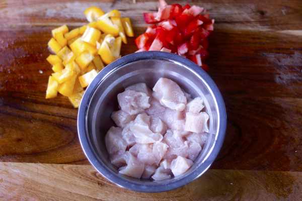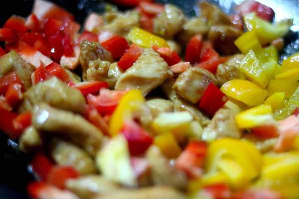 如果是家里有小朋友的话,我更加推荐大家做一道彩椒鸡丁,同样也是把鸡丁提前腌制,我们可以按照上面那个方法进行,其次配料换成洋葱丁,以及黄彩椒和红菜椒,做一道【彩椒鸡丁】