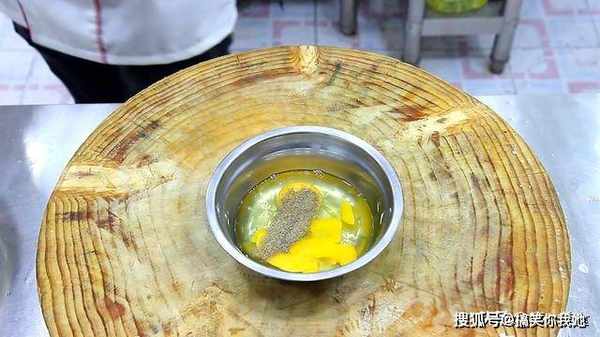 2.准备一个小盆,打入两个鸡蛋,加入食盐和黑胡椒搅拌均匀。