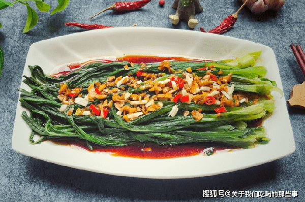 2、起锅烧油,放入葱姜末爆香,加入适量食盐、生抽、白糖,小火煮至浓稠后关火,浇在油麦菜上,撒上小米椒即可。