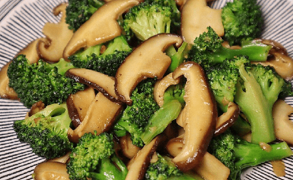 步骤2:锅中倒油,放蒜末爆香,下香菇炒软,然后放入煮好的西兰花翻炒,再放入1勺生抽和适量的盐调味炒匀即可。