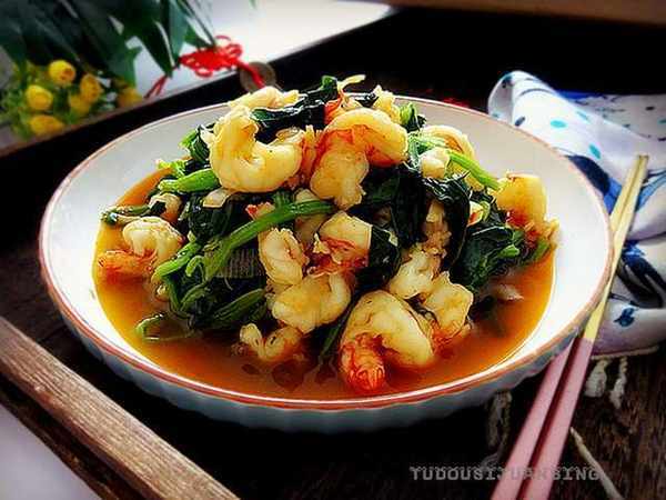 做法:整只虾仁切成两片、用料酒拌匀腌渍10分钟以上;菠菜洗干净,用开水焯烫一下,然后过凉攥干备用。炒锅热油、放入虾仁、经过油煎后虾仁会卷曲,成一个个球状;放入半碗水,同时加入蚝油,生抽,小火炖几分钟,让虾仁熟透;最后放入菠菜翻炒,葱花调味,说淀粉勾芡出锅。