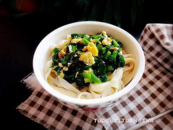做法:韭菜洗干净切成1厘米长的小段;鸡蛋打散,热锅后倒油,把鸡蛋炒熟,直接炒成小块;倒入切好的韭菜翻炒、同时调味,倒入半碗开水后,水淀粉勾芡成粘稠的状态出锅。煮面,浇上做好的韭菜鸡蛋卤即可,鲜香好吃!