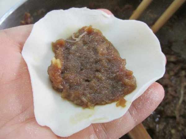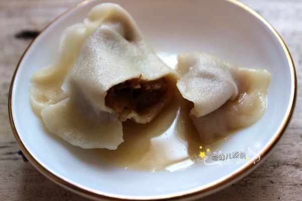 第八步:鍋裏放入水燒開,煮上餃子,用勺子輕輕推動防止粘鍋,蓋上蓋子開鍋後撒冷水繼續煮,如此重複3次,餃子就熟透了,撈出即可開吃。一咬湯汁四溢,特別的好吃。