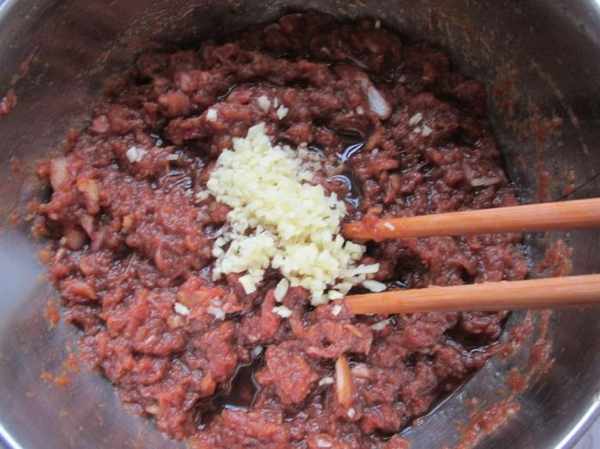 第四步:充分的攪拌均勻,再加入少許薑末,拌勻,這樣洋葱牛肉餡就拌好了。