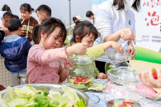 今天,在龙灯山社区由明觉盛世教育组织了一场传统泡菜的活动,由经验丰富的老师传授大家如何制作一份地道美味的四川泡菜。而用到的这些泡菜部分原材料是龙灯山社区及辖区居民,共同把原本一块社区闲置地变成了如今的果蔬良田收获而成的。在种植过程中孩子们不仅学会了传统农耕知识,还磨练自己的性格;父母也在陪伴中,发现了孩子们的闪光点,增进了亲子关系。