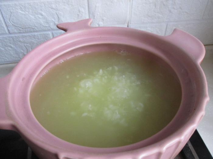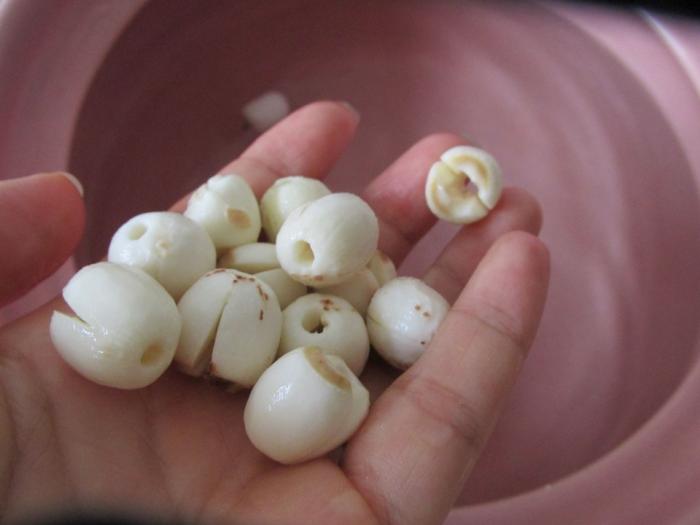 第三步:砂鍋裏放入清水,把蓮子放入,經過浸泡的蓮子很快就可以熟透,在這個季節也可以用新鮮蓮子來做。蓮子可補脾益胃、養心安神、清熱去火等,經常吃一些,可以健腦,增强記憶力,提高工作效率,並能預防老年癡呆的發生。是中老年人强身防病、抗衰延壽的滋補食材,家裡可以常年備著,經常吃一些。