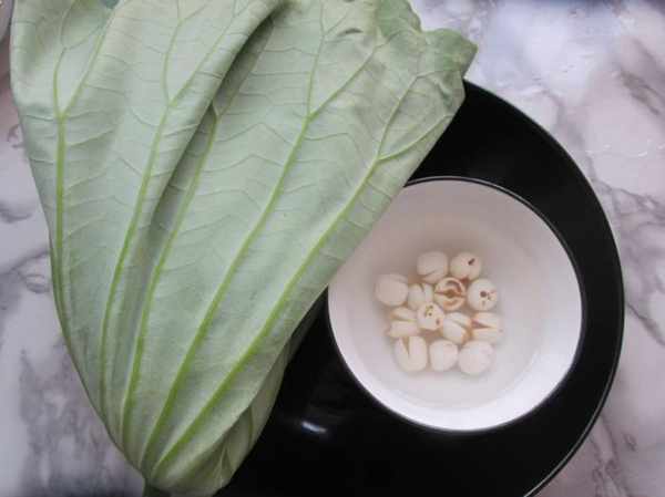 所用資料:荷葉,粳米,蓮子,冰糖(可放可不放)。