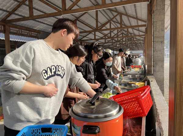 山间厨房变课堂,乡间土锅做饭香。对于大部分00后大学生来说,土锅柴火饭菜,那只是“外婆家的味道”,但是今天,他们却要自己动手,做一顿香喷喷的土锅柴火饭菜。近日,武昌理工学院近1300名学生来到京山市绿林山研学基地,开展了别样生动的劳动教育课,分批体验土锅柴火做饭。