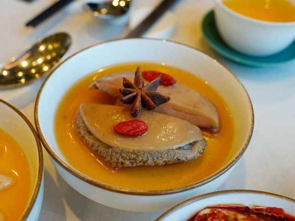 南非鲍鱼,选得大只,亦熟醉入味,质地尤为弹韧,沁出花雕甜香。