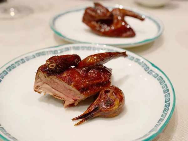 烟熏蔗汁乳鸽是餐厅的招牌菜,选了中山的鸽子,自家做 三天的干式熟成,特别用香港百年老字号的甘蔗汁刷皮水,再用甘蔗渣来烟熏,令鸽子从内而外散发出甘甜气息。