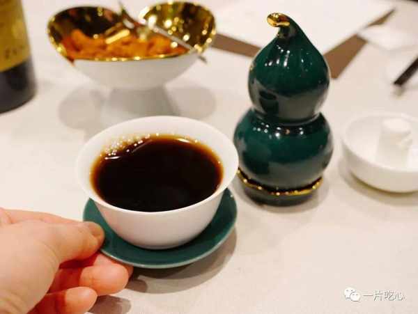 喝到微醺,侍者端来一杯三十年陈的普洱,浓、熟、润、净,抚慰人的感觉,恰到好处。