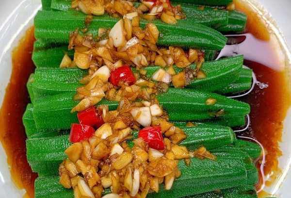 4.将酱汁均匀淋在秋葵上,即可食用。