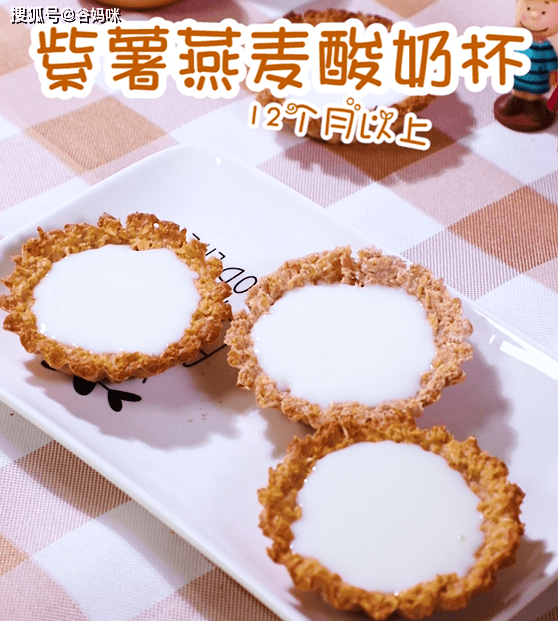 燕麦、鸡蛋、紫薯和配方奶粉烤制出来的杯子,里面倒入酸酸甜甜的酸奶,等宝宝喝完了酸奶,还可以把杯子一口一口吃掉,“咔嚓咔嚓”,酥脆可口,麦香中带着奶香,口感丰富,趣味十足,宝宝吃完一个就念念不忘!