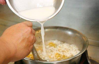 加入酒酿,可以依个人喜好再加点桂花酱添香味;用大火煮滚,并一边搅拌,避免烧焦。