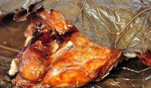 这是江苏常熟地区的传统名菜,原名叫“乞丐鸡”,始建于乾隆时期。一个叫花子偷了一只活鸡。因不能食用,他用黄泥盖上荷叶然后烤制。烤完品尝之后,他发现这种味道是独一无二的。