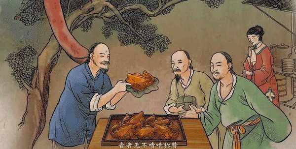 叫花鸡的制法与周代“八珍”之一的“炮豚”相似,“炮豚”就是用黏土把乳猪包裹起,加以烧烤,然后再进一步加工而成的菜。