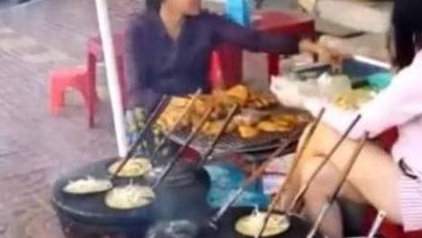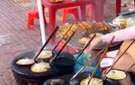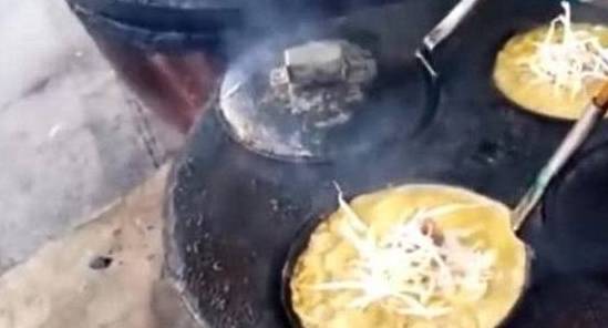 但是姑娘不顾众人反对,一定要做这个!这就是女子售卖的小吃!做的这种小吃是一种蛋饼来着的,第一次看见的时候也是觉得特别的不可思议,但是吃了过后就深深的被折服了,因为是真的好吃啊!