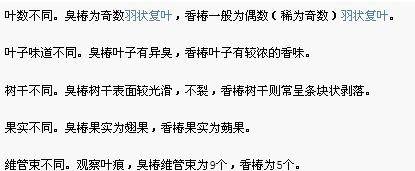 香椿是相对于臭椿来说的,香椿与臭椿有以下区别: