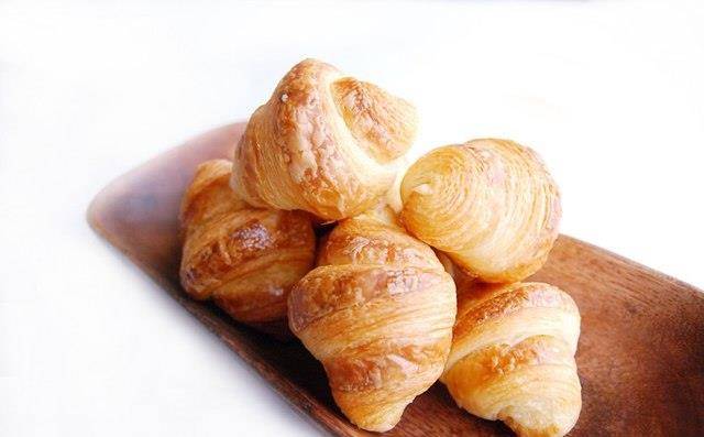 可颂面包是用1层面团,1层奶油堆叠后再擀制成,强调的是表面香酥、内里柔软,并且奶香浓郁的口感。面粉及水的比例,是口感多层次的关键,面粉多、水量少,则层次越分明漂亮!刚出炉的可颂不可密封,需打开透气,否则会因水气而变软,待凉了以后,再密封袋口放进冰箱冷藏,以免水分流失而变干,或是吸收冰箱中其他食材味道而走味。