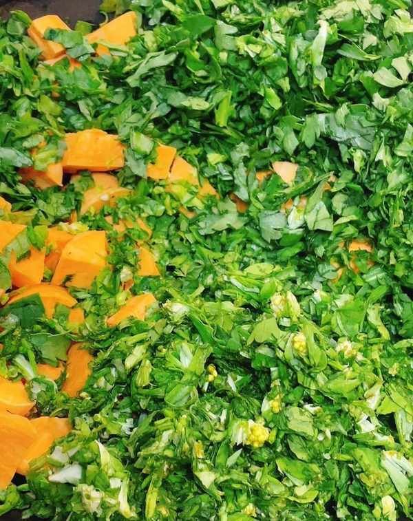 用少许盐、橄榄油和蒜末调味。