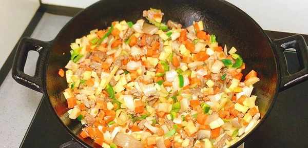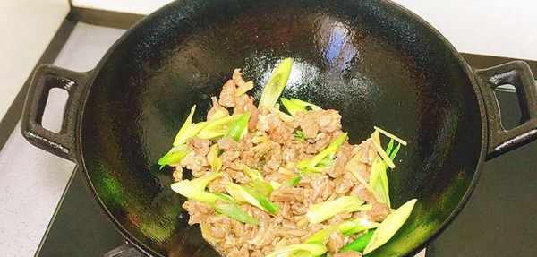 5.将牛肉炒至饱和,放入盘中炒匀。