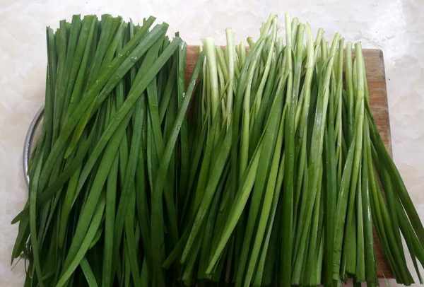 春韭最好吃,最软。它们是不容错过的春季蔬菜。它们还具有很高的营养价值。它们含有大量的维生素、矿物质和纤维素。微克叶酸。