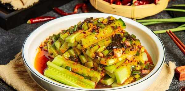 2、取一个小碗放入2勺老干妈,加1勺甜醋、1勺鲜味精、少许盐、香油、蒜末、葱末拌匀,将酱汁淋在剁碎的上面。黄瓜段,蒜香辣爽口,很肥腻。随着天气变暖,你将不得不多吃这种凉拌沙拉。美味又简单。