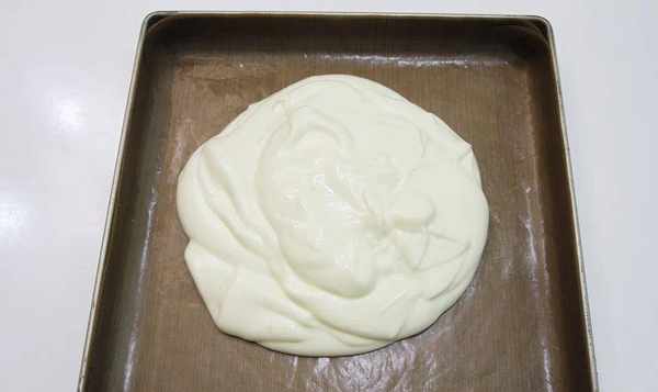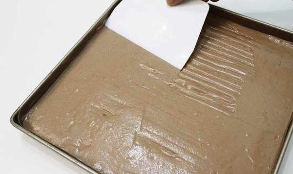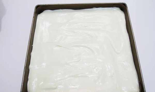 11、用刮刀将面团表面刮平,轻轻抖掉大气泡;