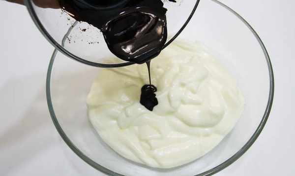 8、将拌匀的可可糊加入备用的主色面团中,拌匀成可可糊,挤好;