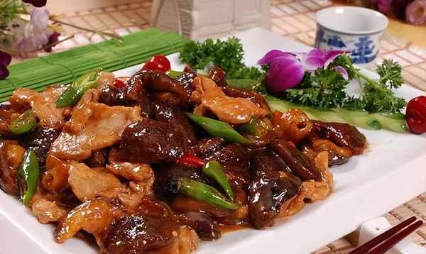 鸡胸肉、五花肉、香菇、豆瓣酱、面酱、盐油、酱油、盐、料酒、白糖、干淀粉