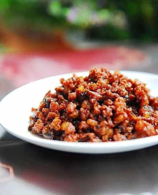 3锅烧热放油,加入肉碎翻炒至肉变色水收干,加入少许面酱、料酒(可不放)、酱油、盐、糖并混合。炒几次