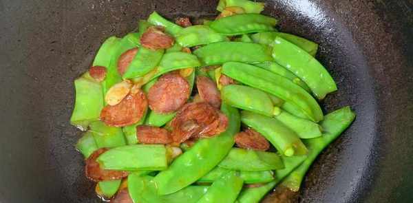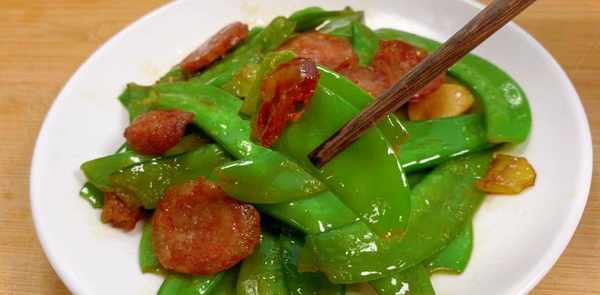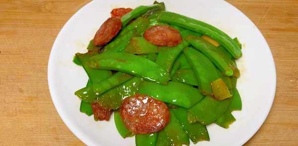 老人们常说:“春天吃花生,不如吃肉”,所以春天大家要注意吃花生。这个季节也是各种时令蔬菜上市的季节,豆类蔬菜有雪豆、绿豆芽等,我们家最受欢迎的是荷兰豆。它松脆爽口,味道甘甜,营养价值丰富。它含有丰富的维生素、蛋白质、钙、碳水化合物、氨基酸等营养成分。适当吃几颗荷兰豆,可以清肠胃,清肝明目,增强抵抗力。荷兰豆最常见的吃法是用香肠来炒。今天就给大家介绍荷兰豆炒香肠的小窍门。易炒香干,好香!